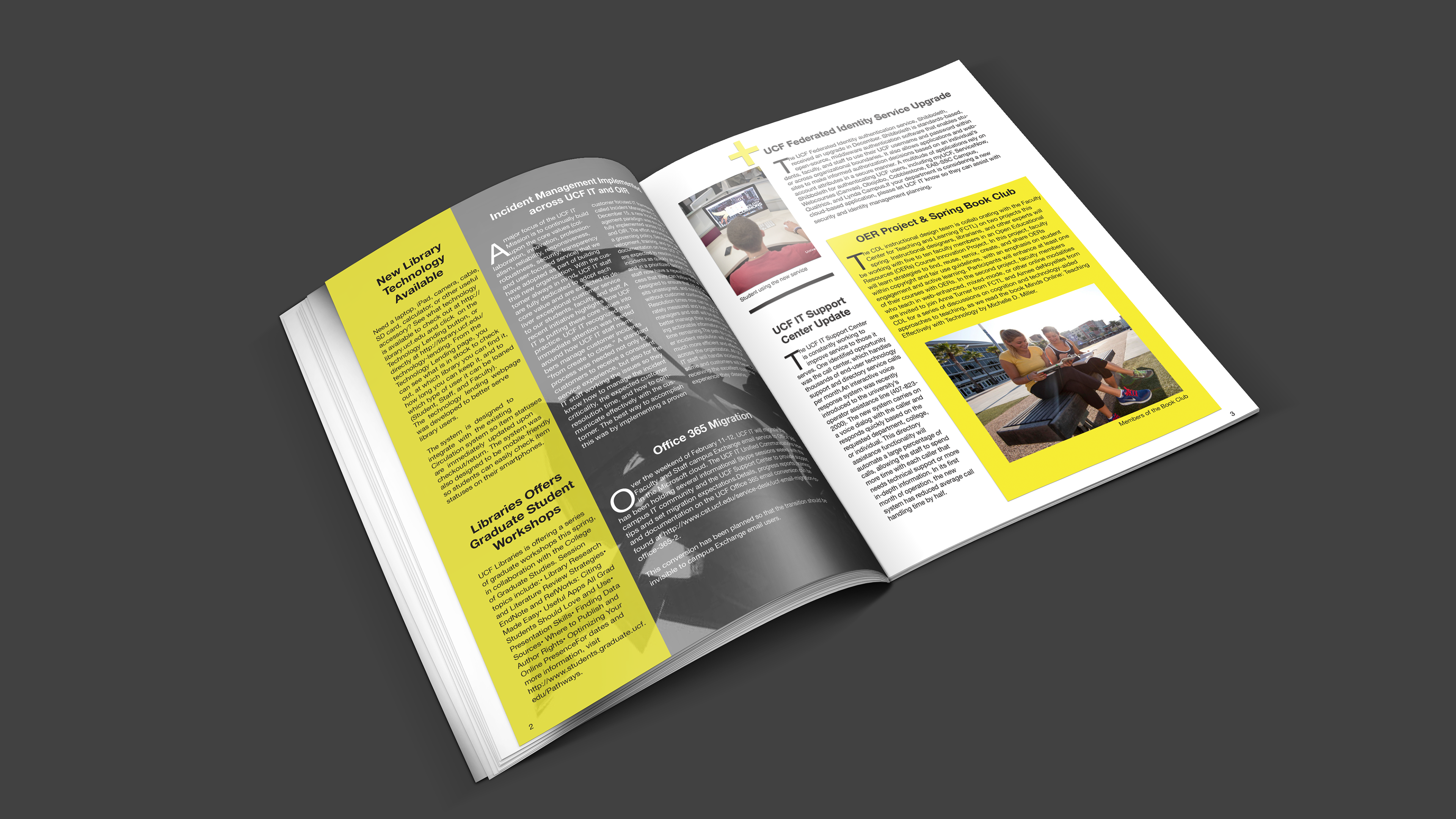 University of Central Florida, College of Technology newsletter layout design.